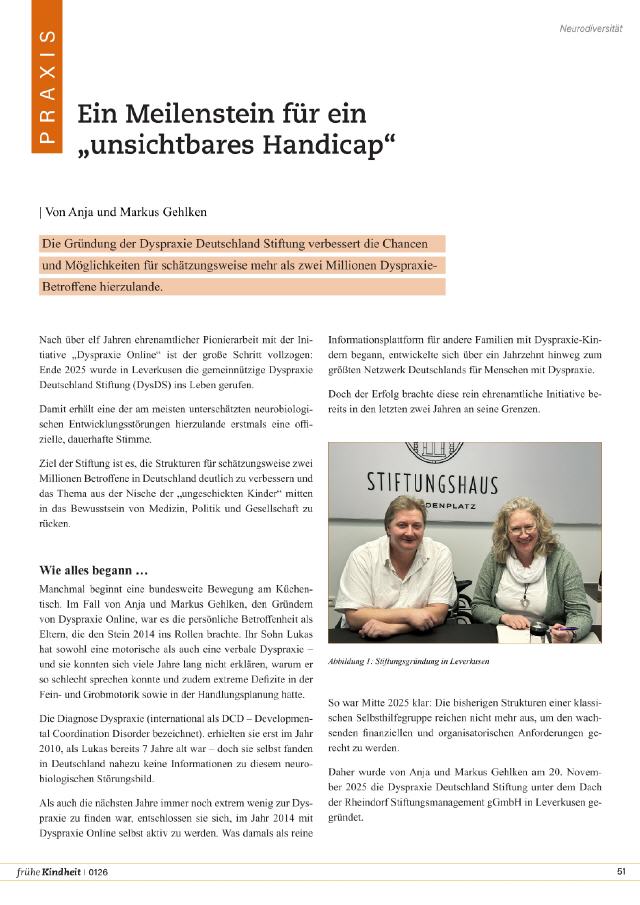 Warum die Gründung der Dyspraxie Stiftung?