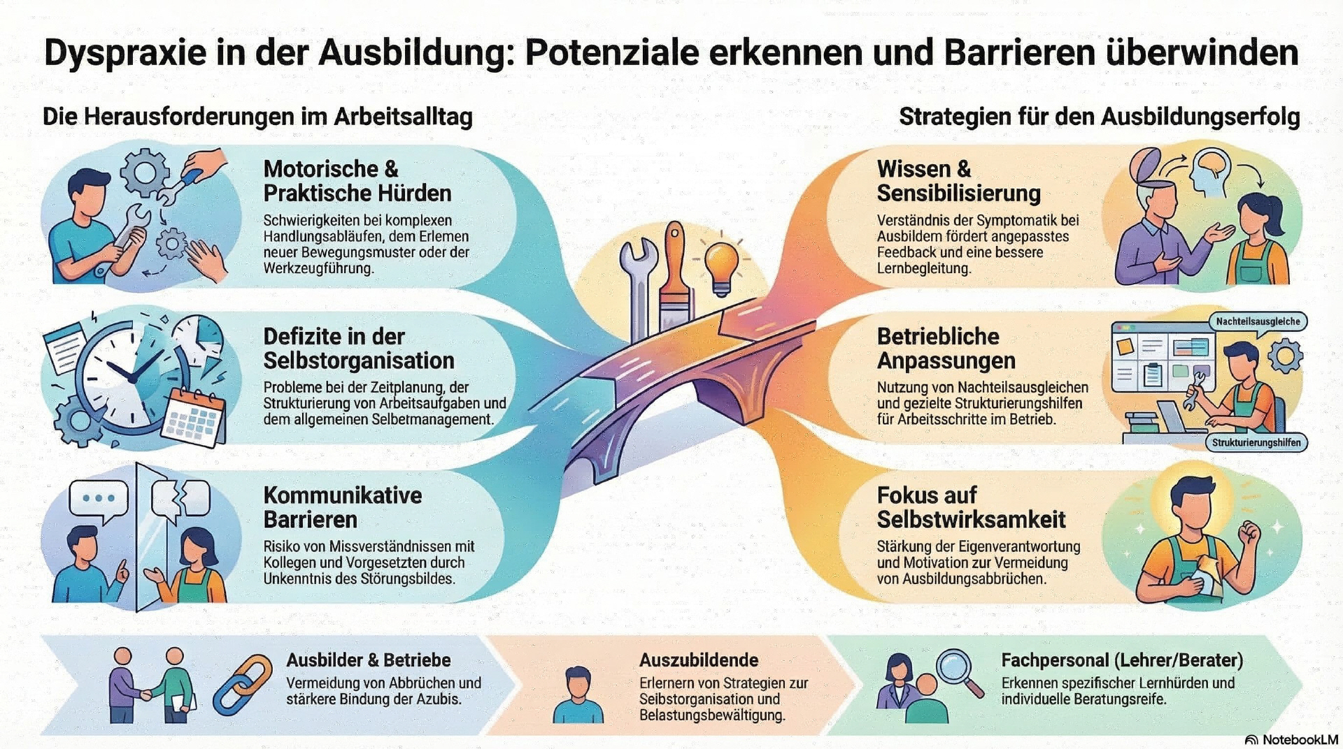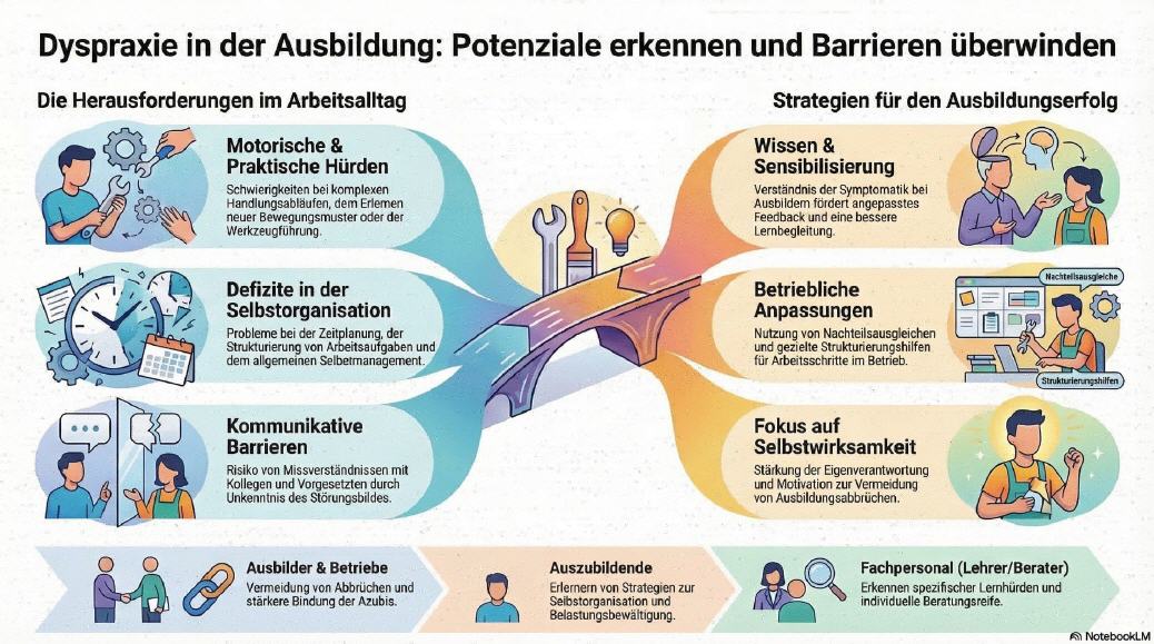 - Berufsberaterinnen und -berater – Erweitern ihr Wissen über Dyspraxie zur individuellen Ausbildungsberatung.