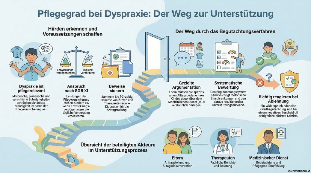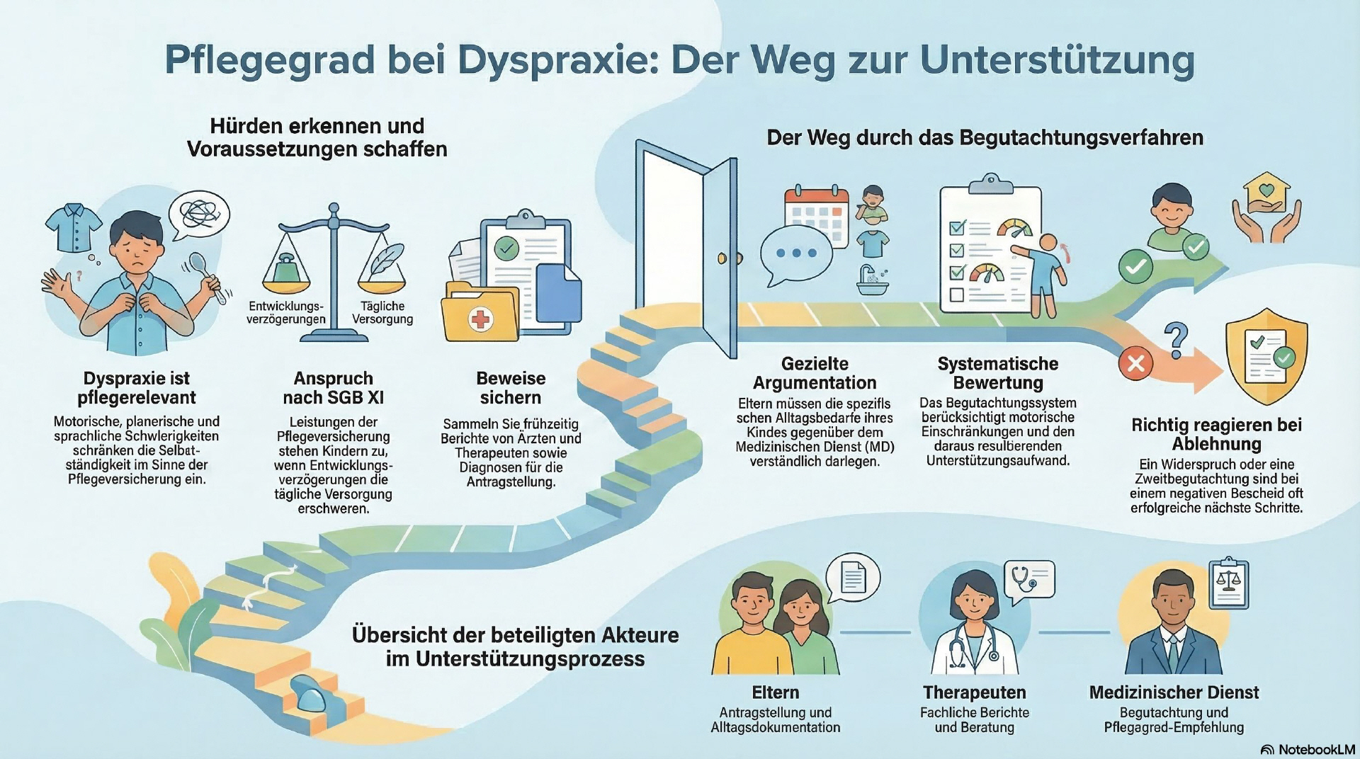 - Eltern von Kindern mit Dyspraxie: Unterstützung beim Verständnis und bei der Antragstellung auf Pflegeleistungen.