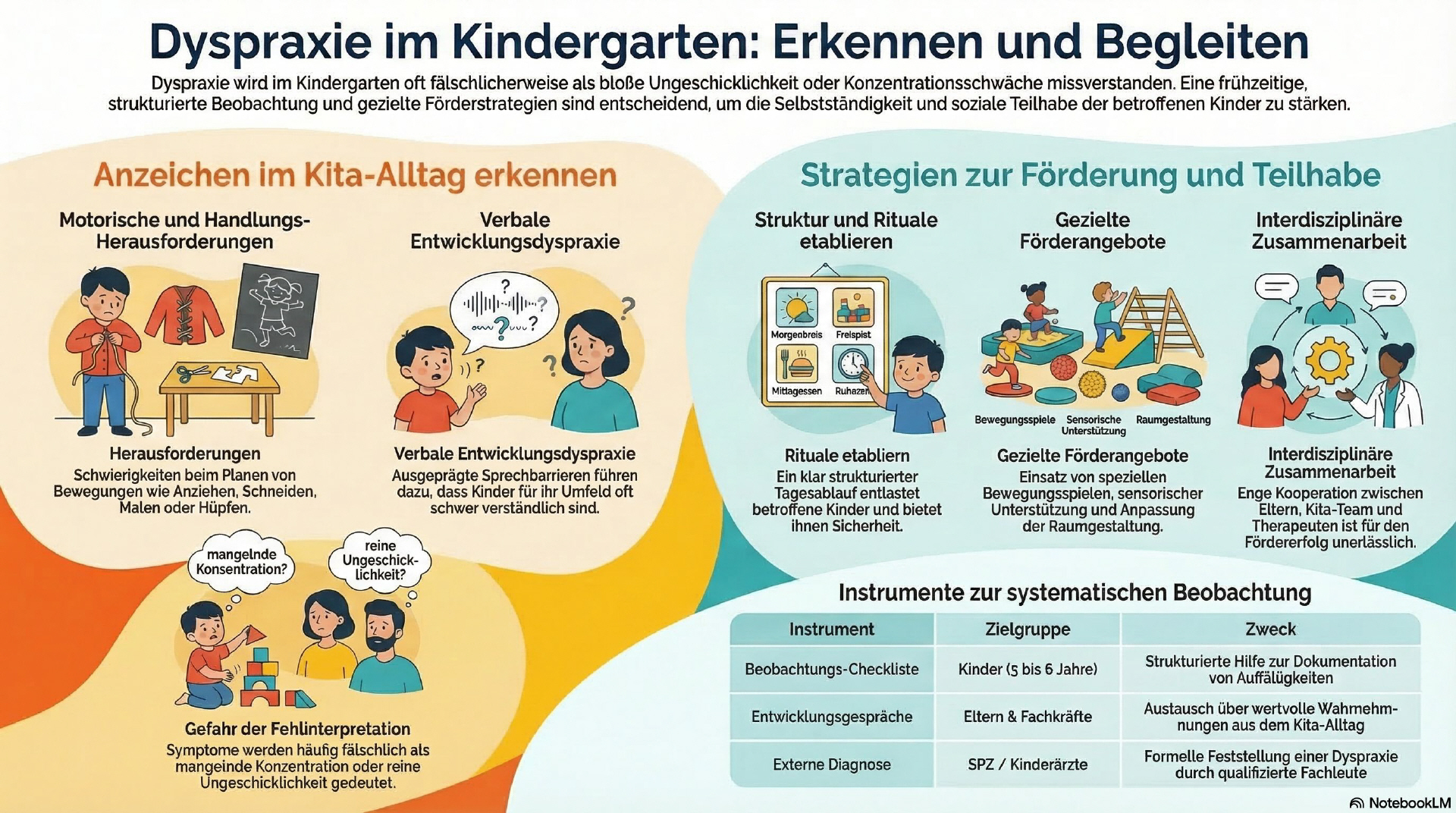 - Grundverständnis der Dyspraxie im Vorschulalter – Definition, Symptome und typische Entwicklungsverläufe.